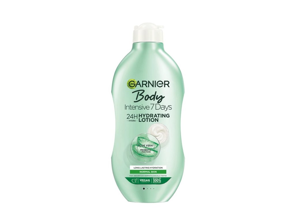 Garnier Intensive 7 days hydratačné telové mlieko je obohatené o aloe vera a probiotické frakcie. Okamžite osviežuje a zjemňuje pokožku a dlhodobo ju hydratuje. Pokožka je osviežená a zjemnená. Pocit hydratovanej pokožky až 7 dní.