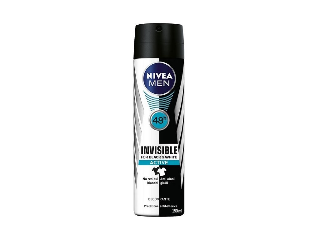NIVEA MEN Black&White Invisible Active Antiperspirant poskytuje ochranu 5v1 a chráni pred nepríjemným zápachom, potením, žltými škvrnami, bielymi stopami a pred podráždením.