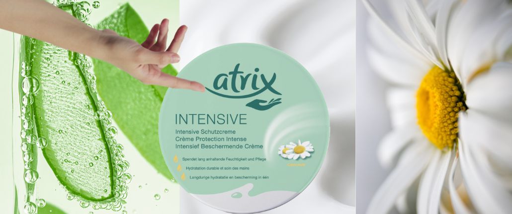 Značka Atrix ponúka ochranné krémy pre pracovitú pokožku rúk. Krémy sa rýchlo vstrebávajú a sú obohatené účinnými ingredienciami ako sú harmanček a aloe vera, vitamín B5, avokádo a urea.